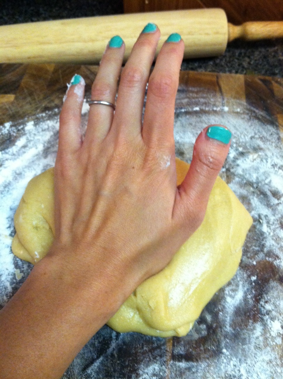5. Rub some flour on the cutting board and transfer the dough from the bowl.