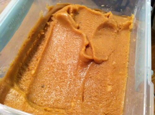 7. Put the lotus paste in a container. Feel free to add nuts to some of the lotus paste. I made a few nut mooncakes mixing in almonds, pumpkin seeds, and walnuts as a separate filling.